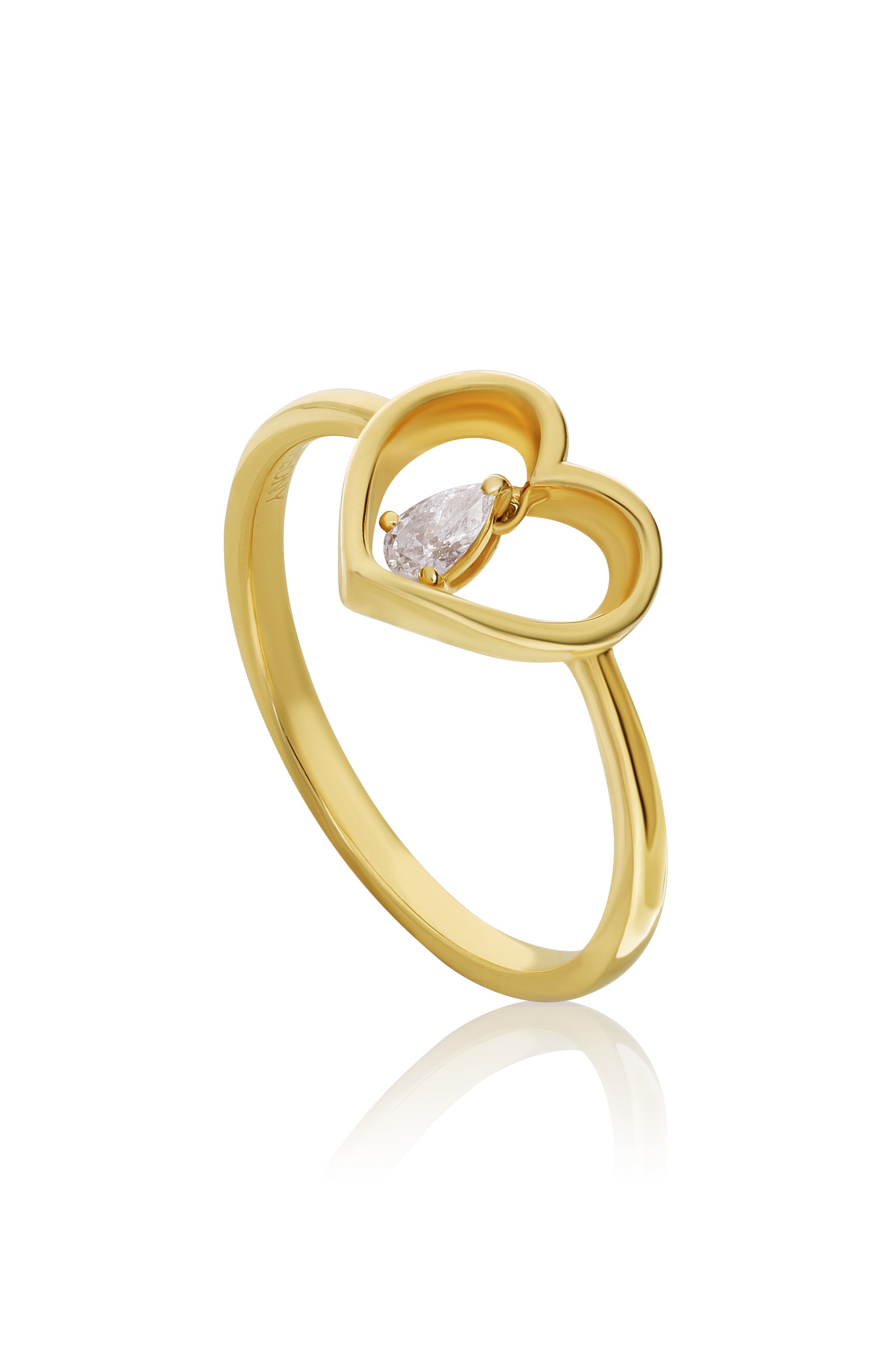 خاتم سوليتير على شكل قلب ذهبي
