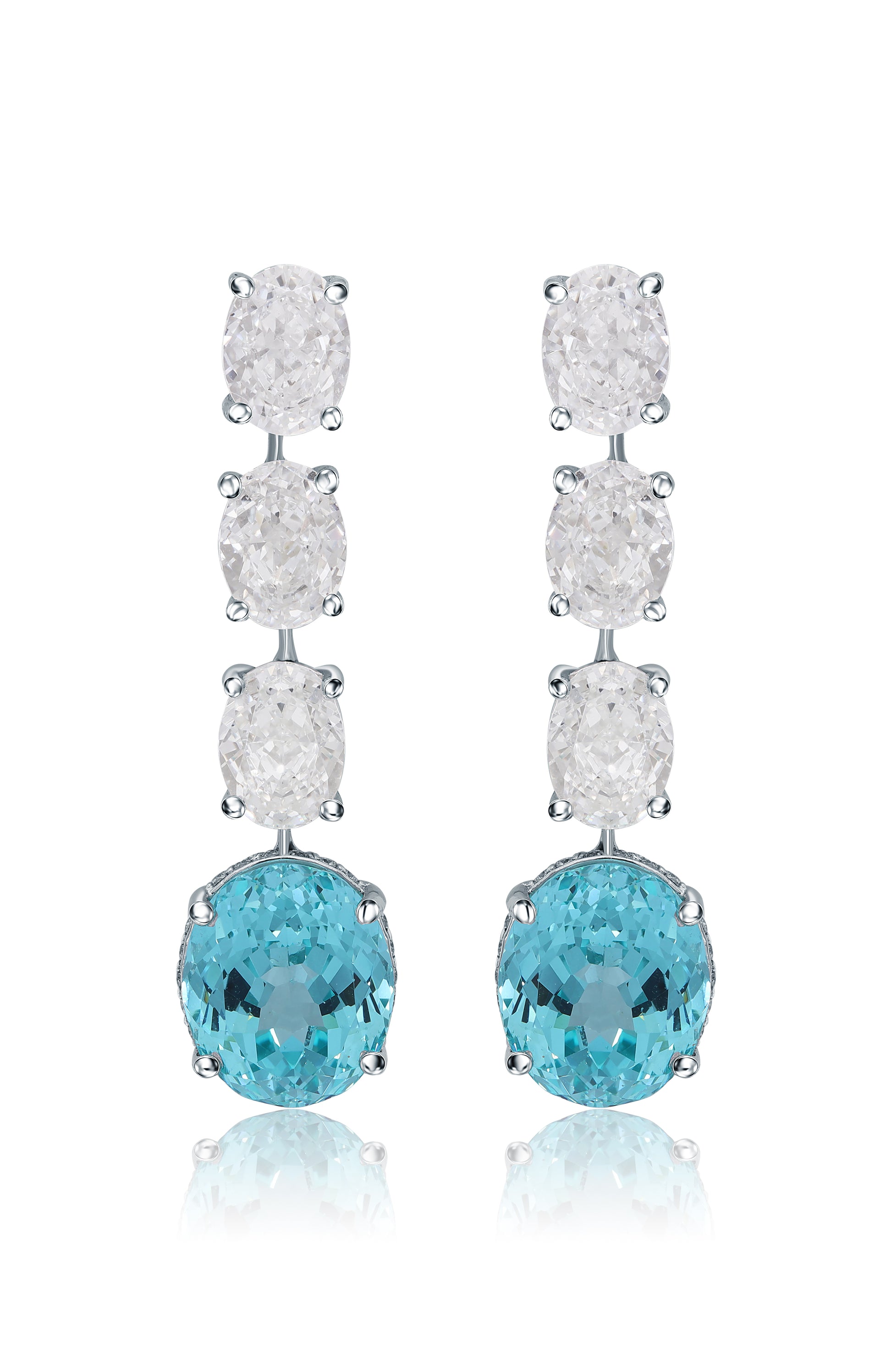 A refined drop silhouette featuring a striking aqua-blue stone paired with luminous white stones. Designed to move effortlessly with you, Azure Grace brings elegance and light to both everyday and evening looks.
